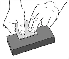 Sharpening the blade of a drawknife plane is the most difficult part of learning to use it. Only when you understand how a drawknife works and what a sharpened edge on the blade should look like (see image above), should you attempt to sharpen such a blade.