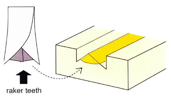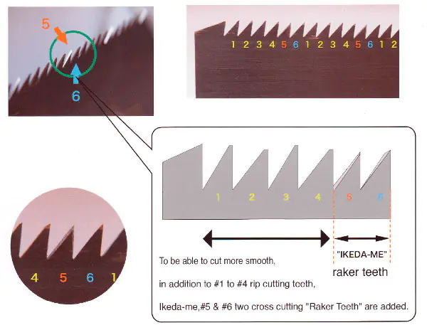 On the rip side, every 5th and 6th tooth is a clearing tooth (ripping tooth) for fast and clean sawing.