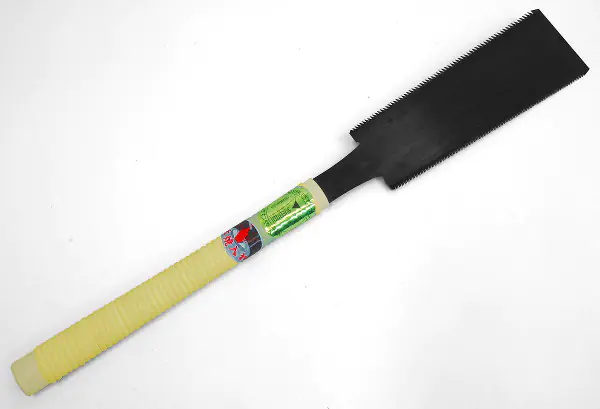 For the production of this saw, the well-known sawsmiths Yoshiwaka and Ikeda, working in Miki, have joined forces. Under the flowery and self-assured brand name "Gokui," which means "Highest level of technology achieved!", a saw has been developed that also features clearing teeth on the rip side. Rip saws are generally coarser saws. With these clearing teeth (Ikeda-Me), for which Ikeda holds a patent, the rip cut is significantly finer as well.