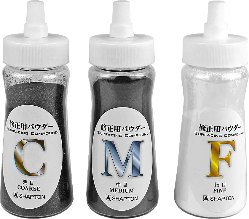 For grinding stones in the medium grit range of 1000 to 2000, use the medium grinding powder. However, if these stones are heavily deformed, you can also use the coarse powder.