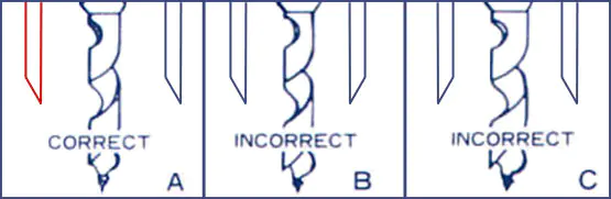 For all circles over 70 mm, be sure to use a drill stand and securely clamp the workpiece. For circles under 70 mm, you can use a hand-held drill, provided the workpiece is securely clamped and you are standing on solid ground (not on a ladder)! Work only with light pressure and moderate speed, and let the cutting edges gently plunge into the material. Sudden heavy contact with the material due to too fast approaching can cause the drill to get stuck. Be aware that stuck drills release forces that can lead to accidents with a risk of injury.