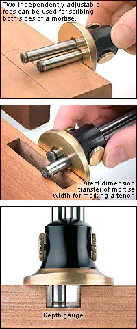 The two independently adjustable rods of this marking gauge allow you to set two measurements simultaneously. This way, you can quickly switch between the two measurements when marking or transferring repetitive dimensions.